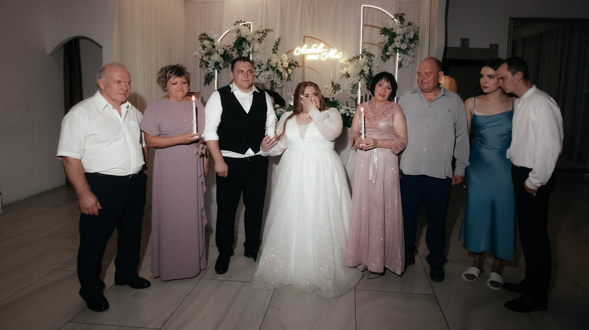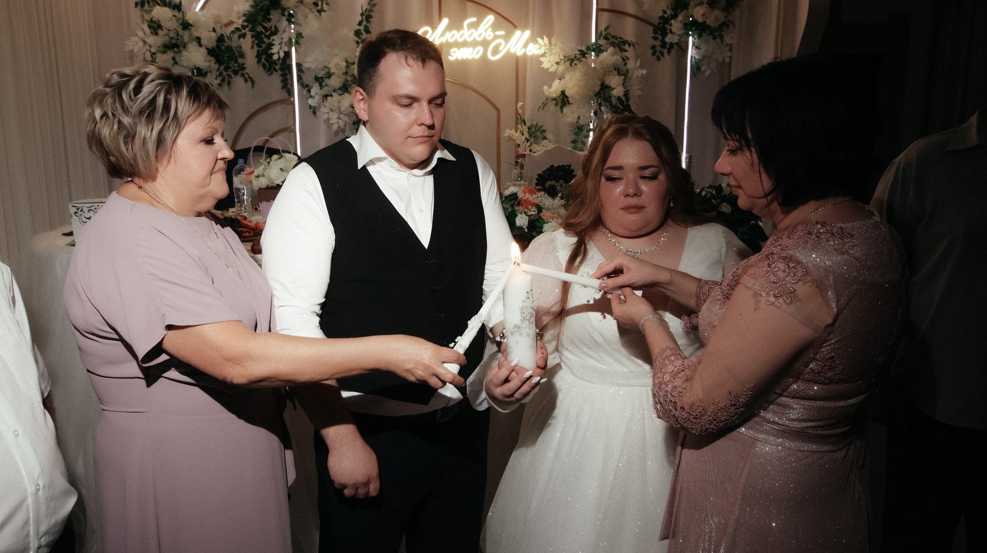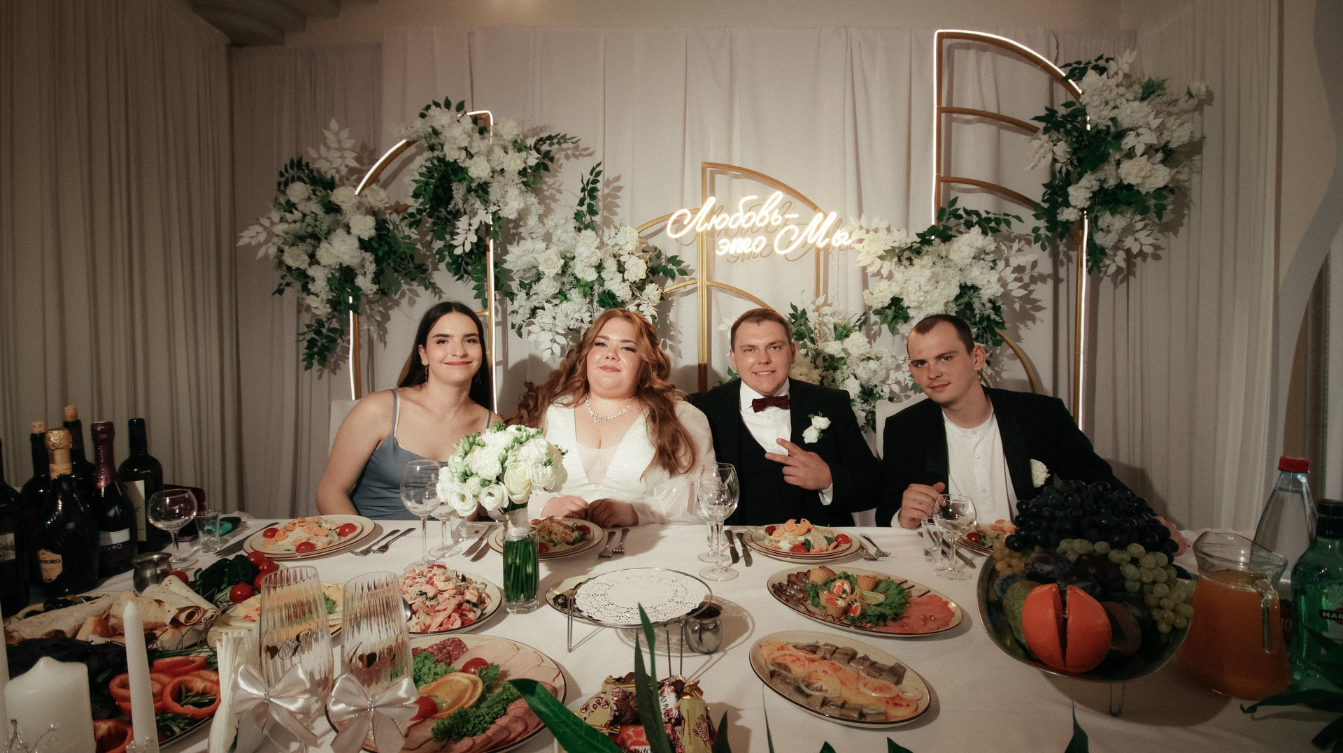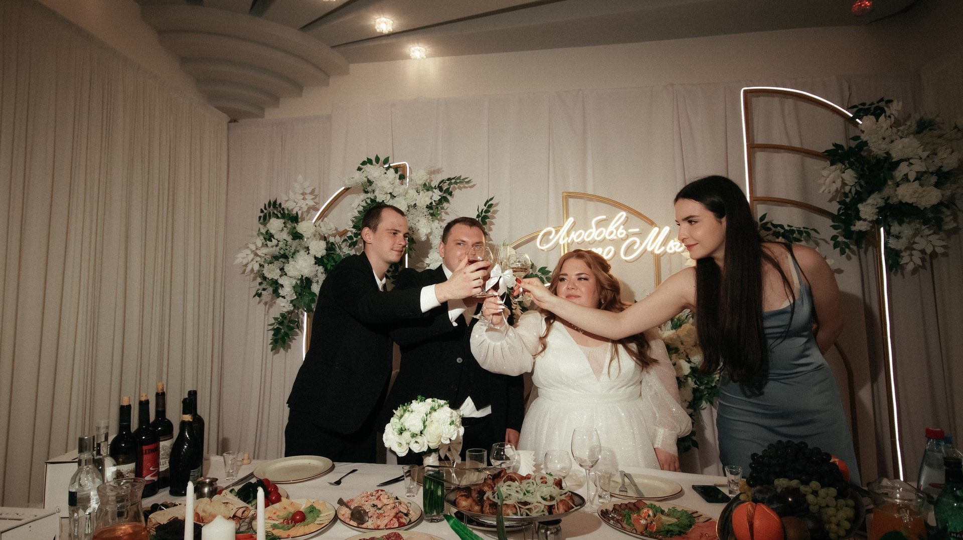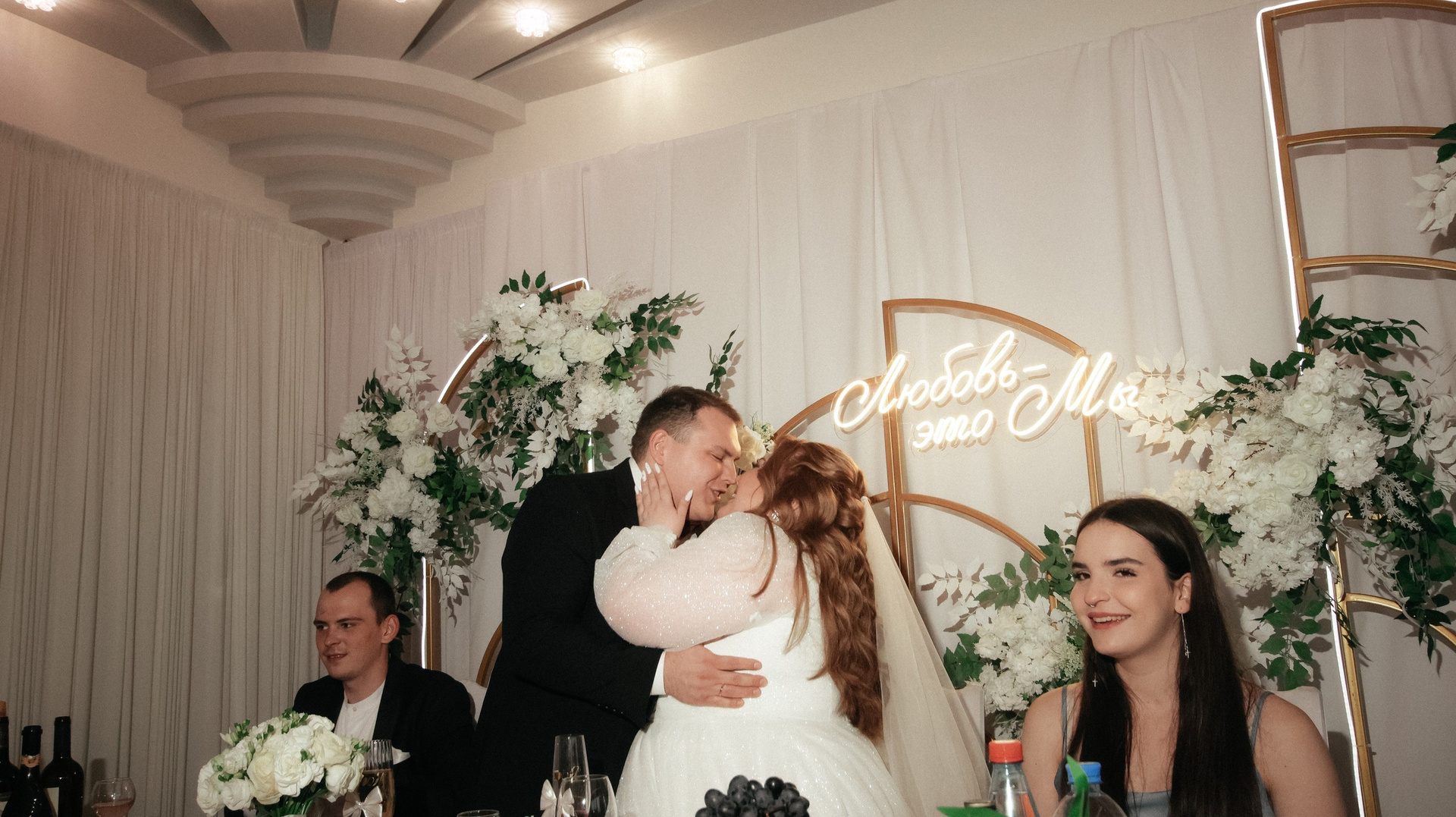 Видео — это вообще любовь. Больше всего понравился короткий клип: он получился не «как у всех», а реально современный, атмосферный, как мини‑кино. У друзей в этом году тоже были свадьбы, и, честно, у многих видео выглядело очень устаревшим, плюс длинные фильмы, которые просто невозможно смотреть. А наши видео хочется включать снова и снова: к нам приходят друзья, и каждый раз говорят: «Давайте посмотрим ваши!» Мы смотрим — смеёмся, плачем, замечаем что‑то новое.