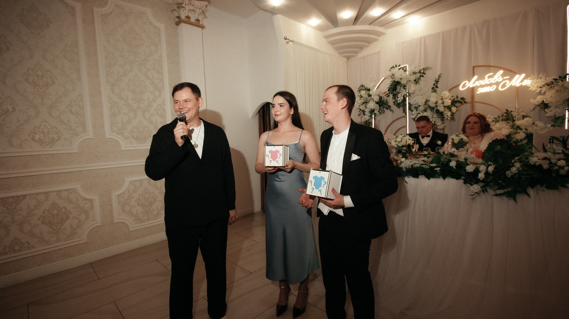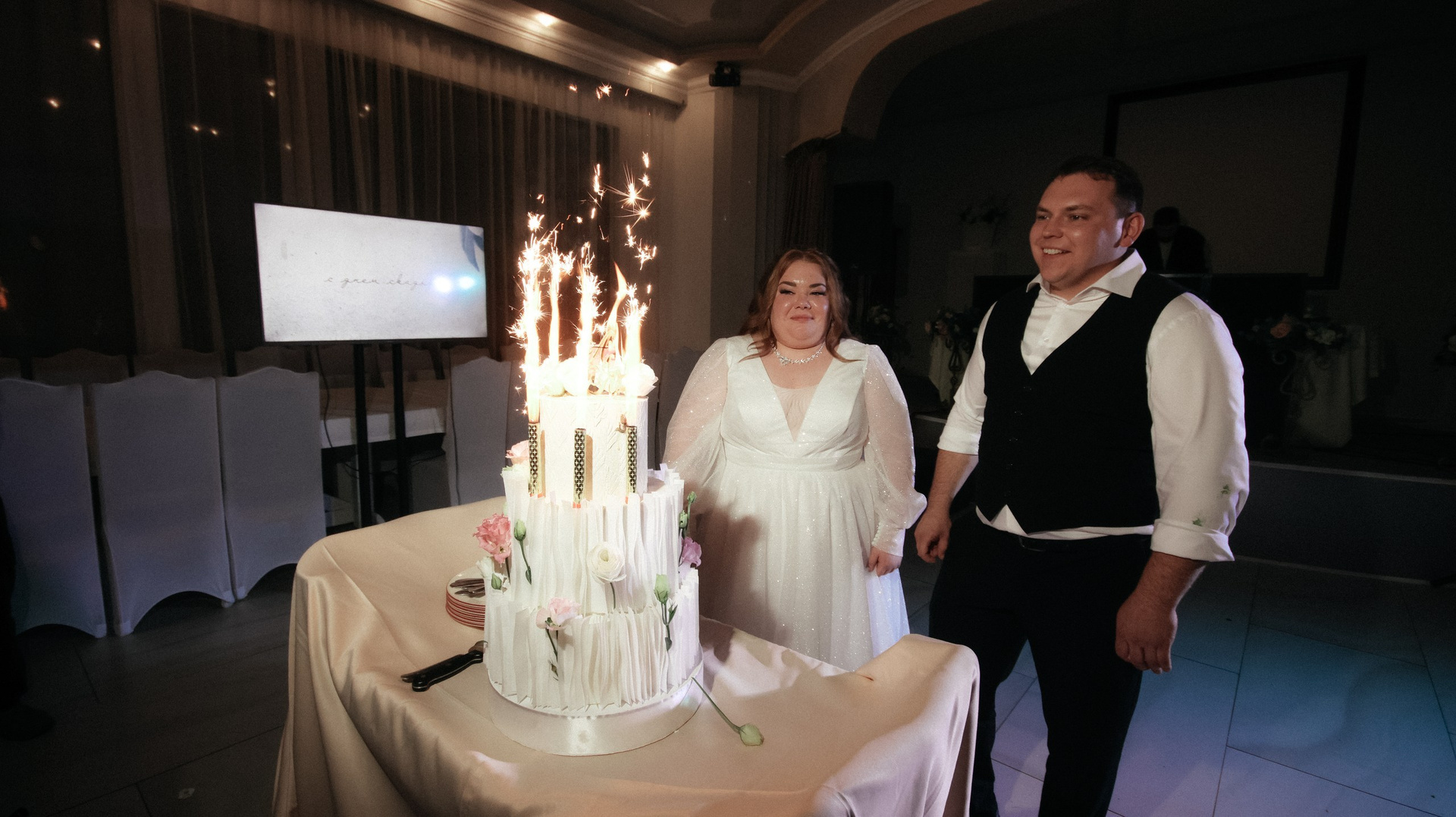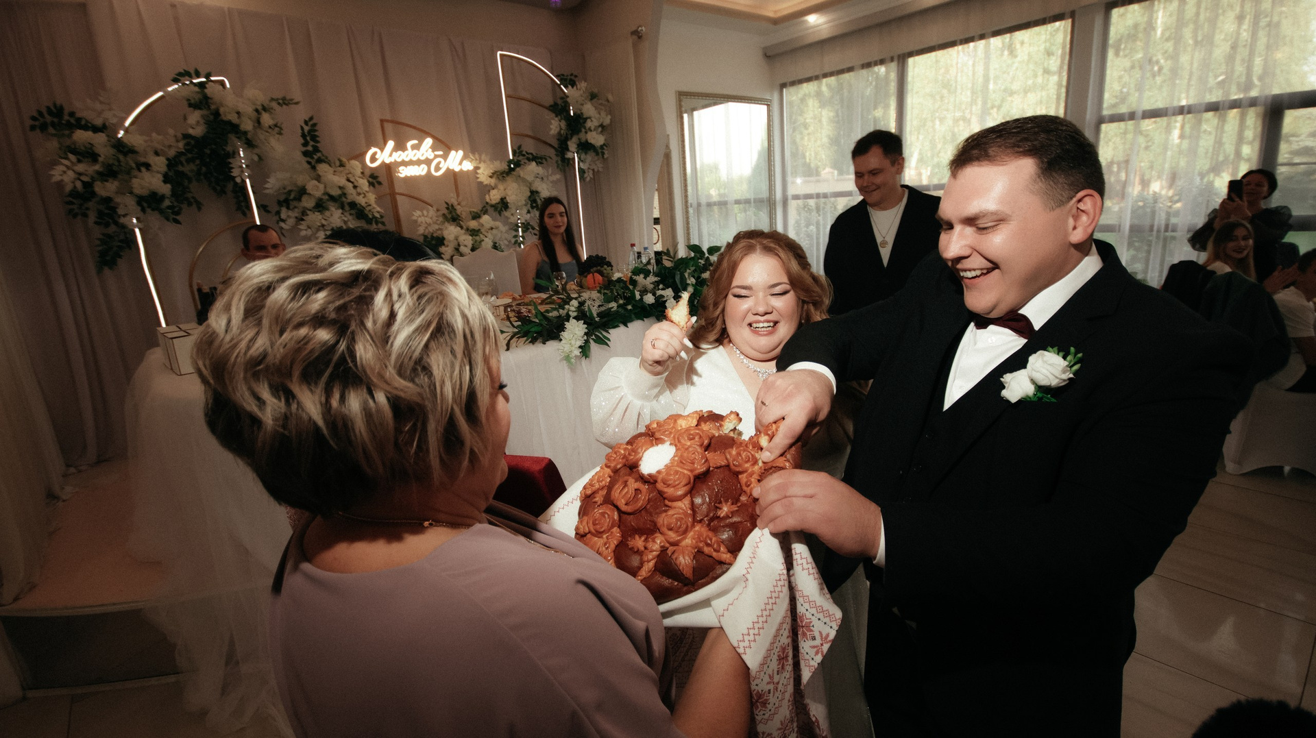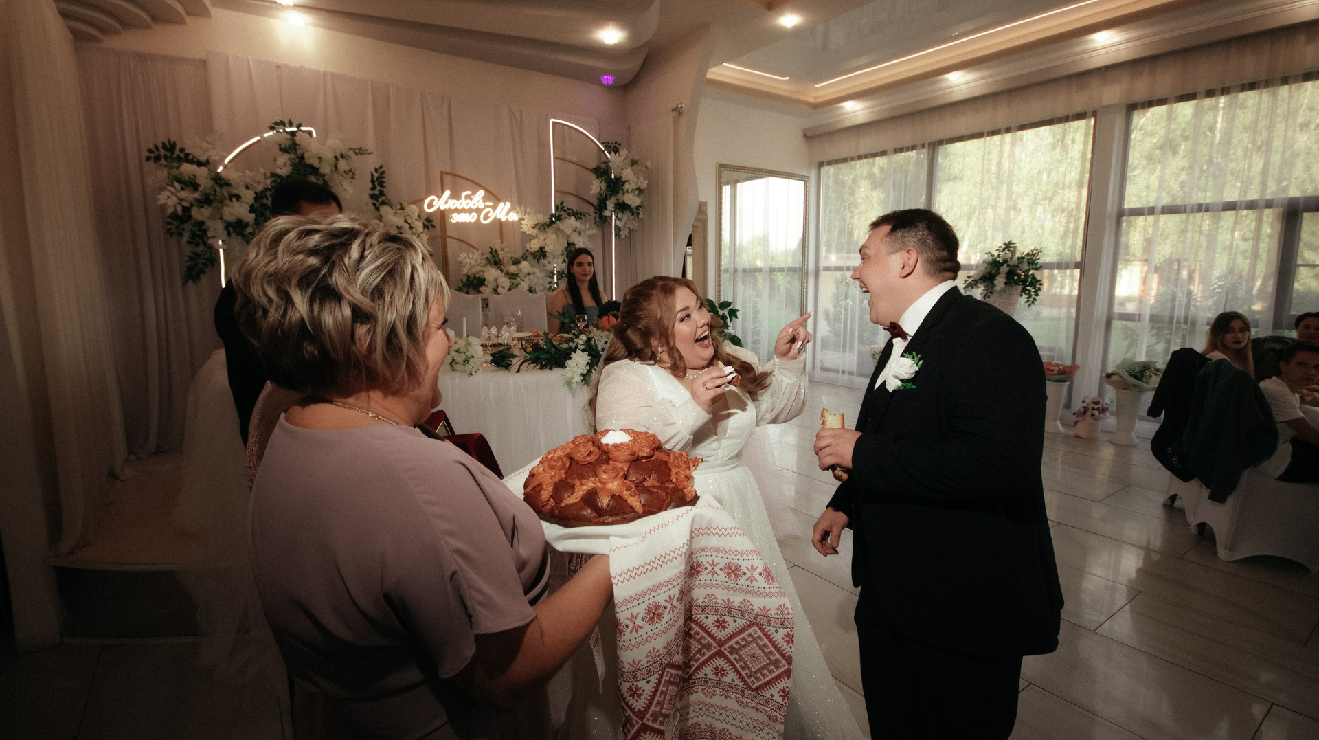 Видео — это вообще любовь. Больше всего понравился короткий клип: он получился не «как у всех», а реально современный, атмосферный, как мини‑кино. У друзей в этом году тоже были свадьбы, и, честно, у многих видео выглядело очень устаревшим, плюс длинные фильмы, которые просто невозможно смотреть. А наши видео хочется включать снова и снова: к нам приходят друзья, и каждый раз говорят: «Давайте посмотрим ваши!» Мы смотрим — смеёмся, плачем, замечаем что‑то новое.