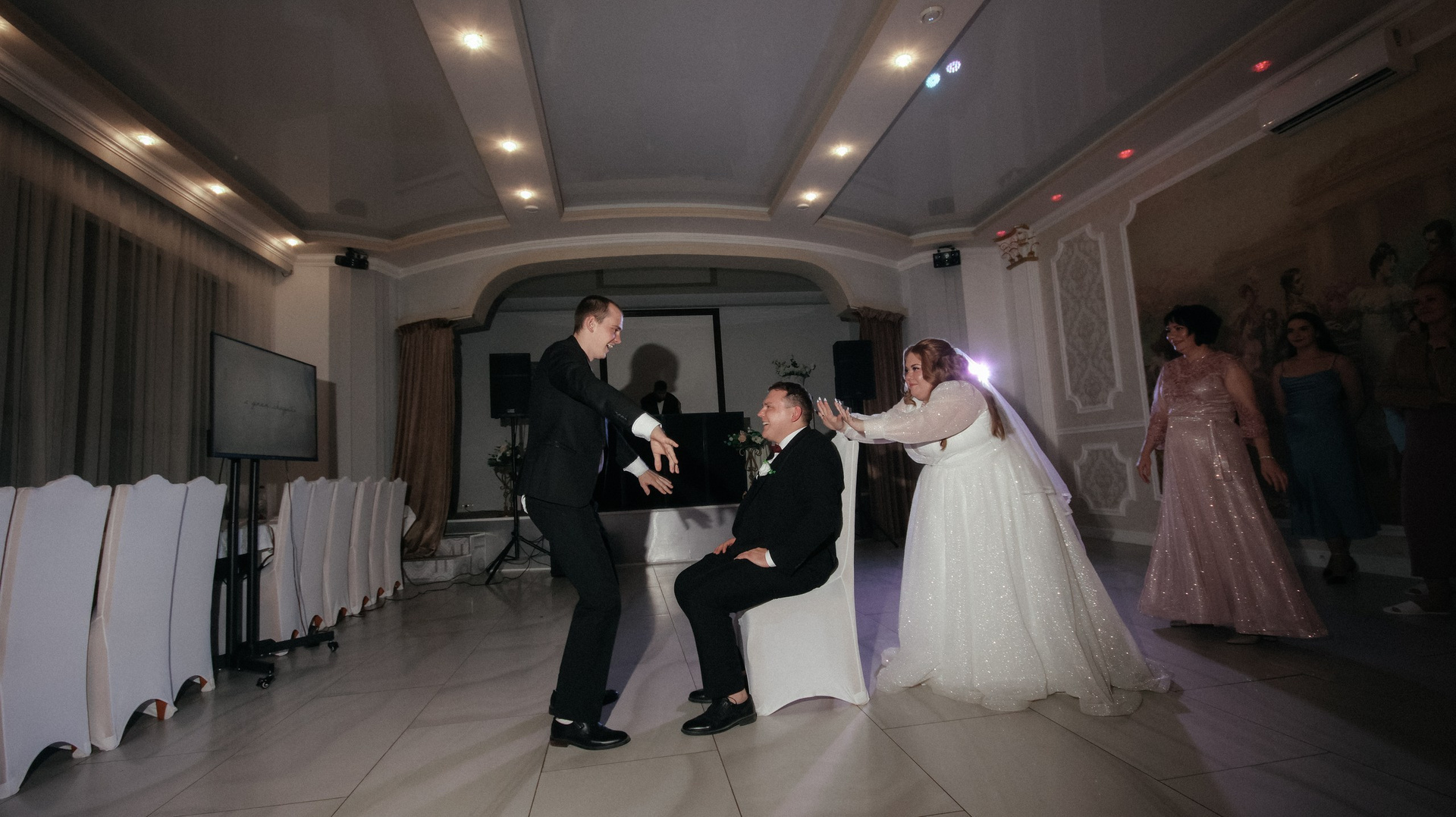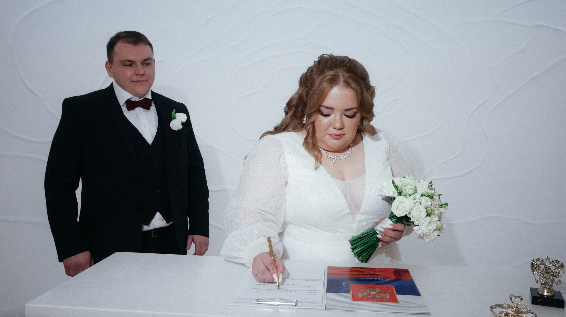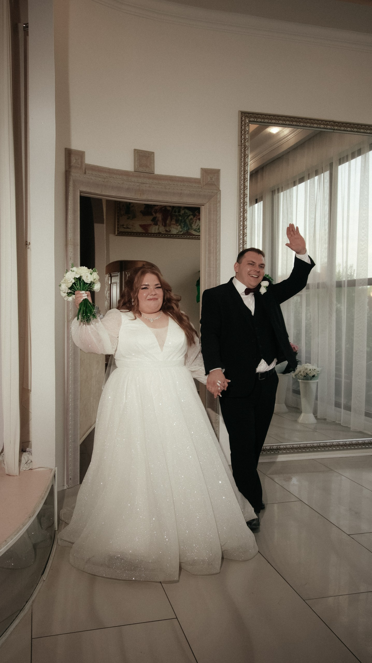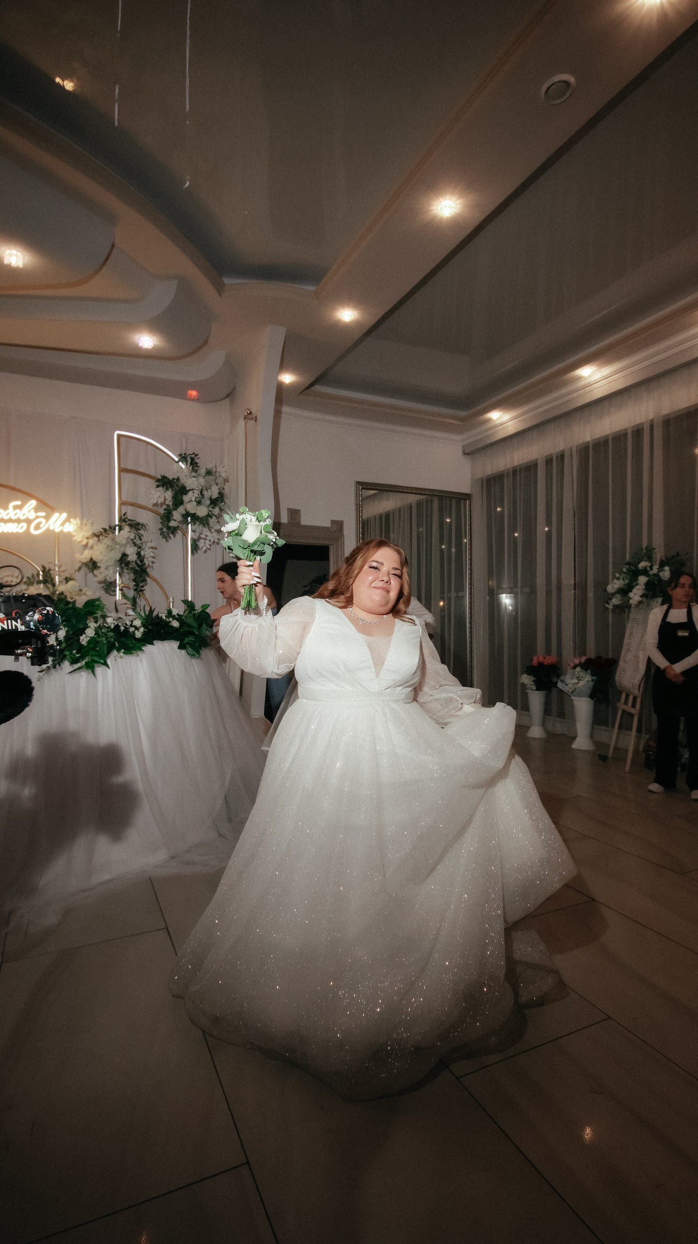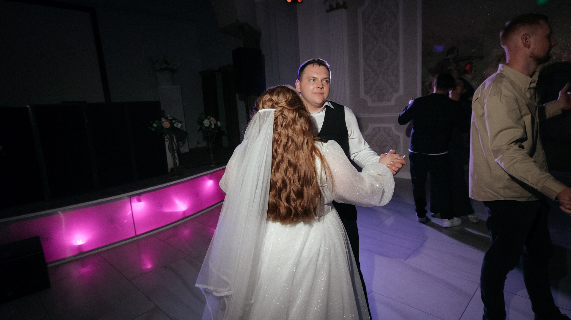 Видео — это вообще любовь. Больше всего понравился короткий клип: он получился не «как у всех», а реально современный, атмосферный, как мини‑кино. У друзей в этом году тоже были свадьбы, и, честно, у многих видео выглядело очень устаревшим, плюс длинные фильмы, которые просто невозможно смотреть. А наши видео хочется включать снова и снова: к нам приходят друзья, и каждый раз говорят: «Давайте посмотрим ваши!» Мы смотрим — смеёмся, плачем, замечаем что‑то новое.