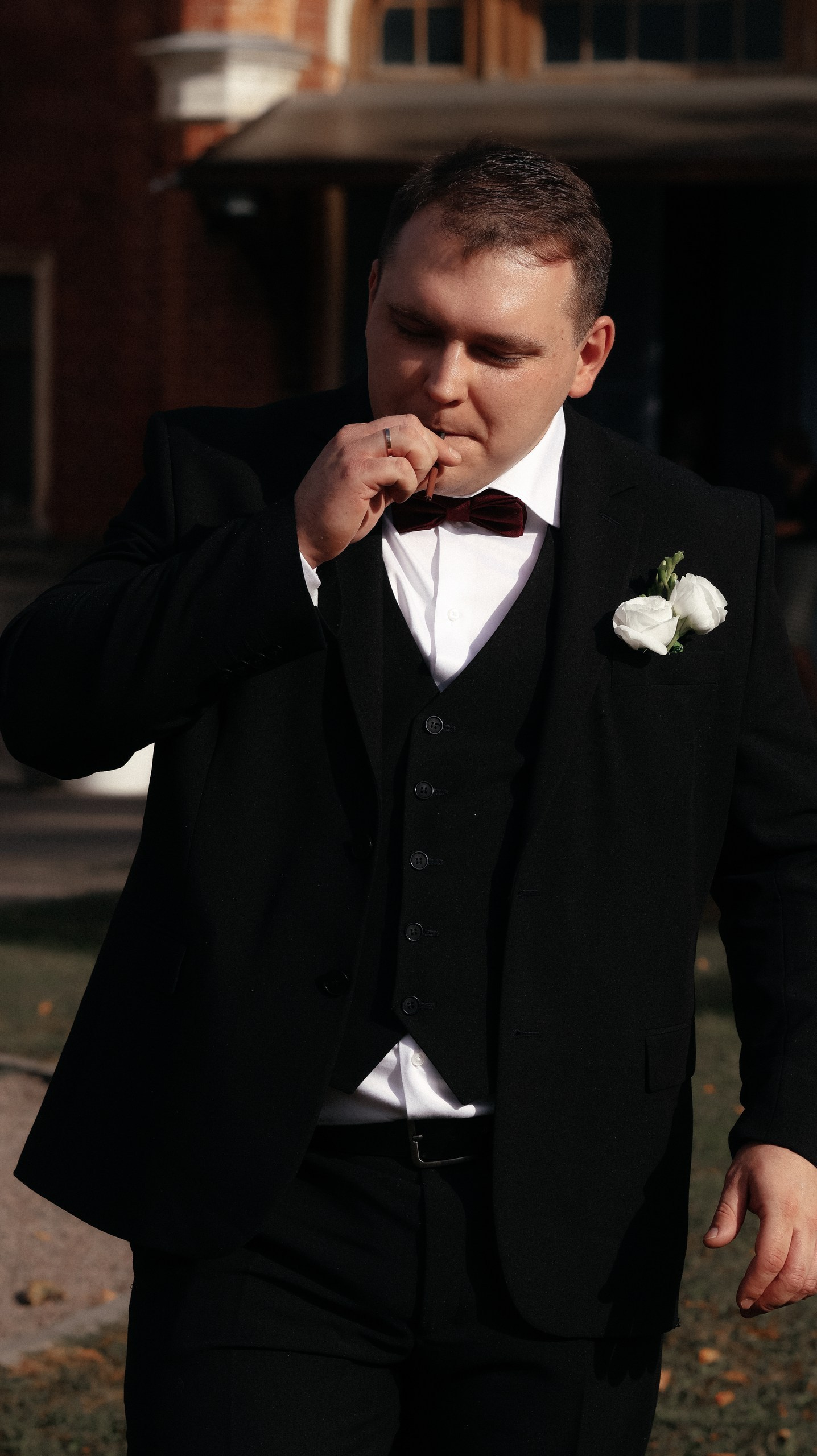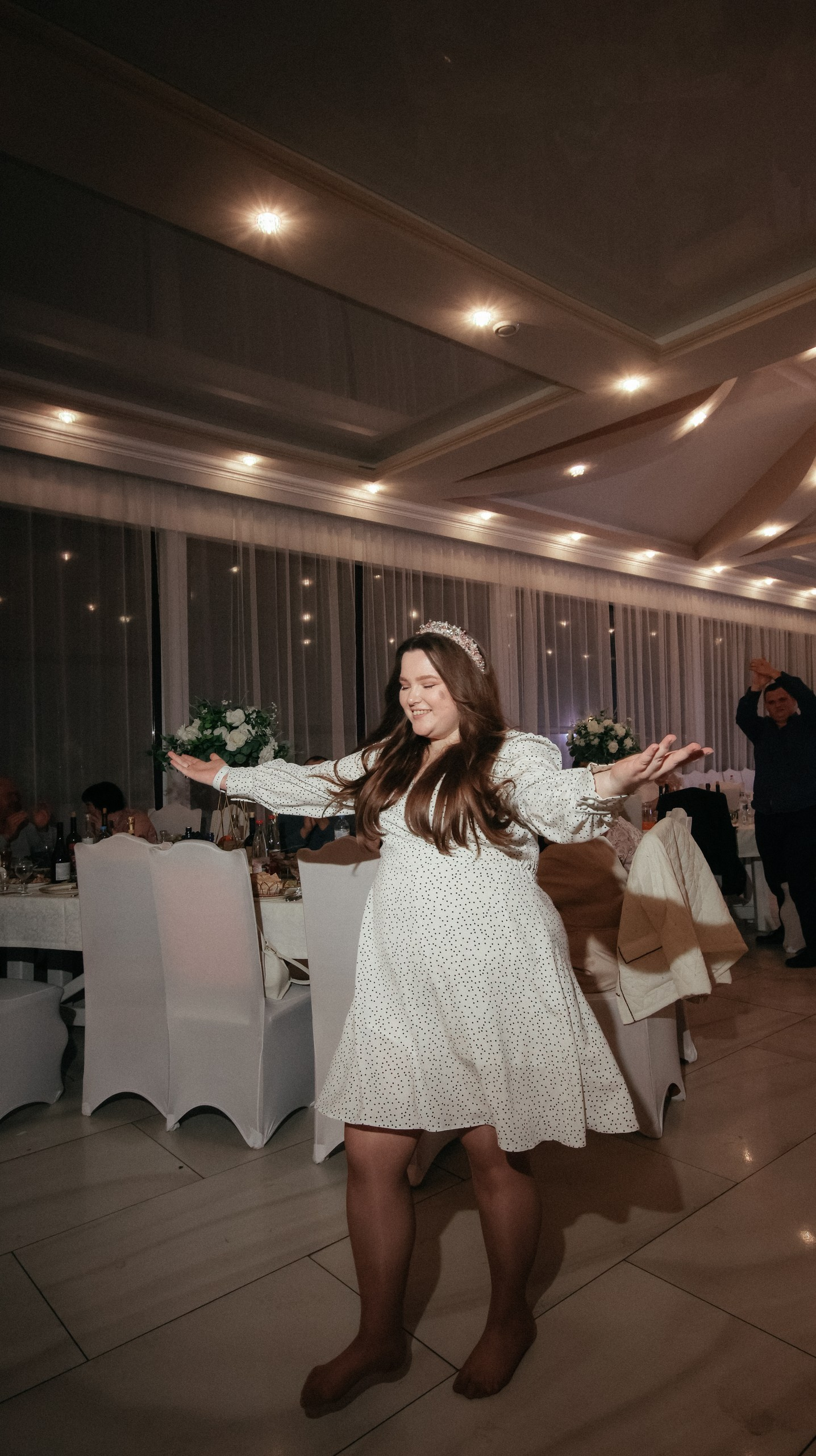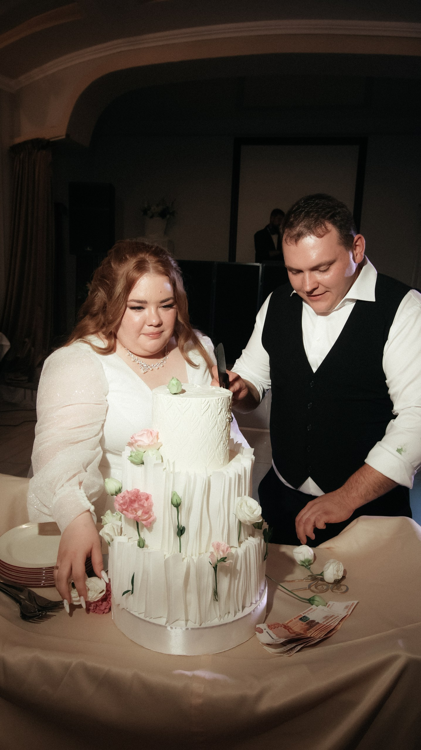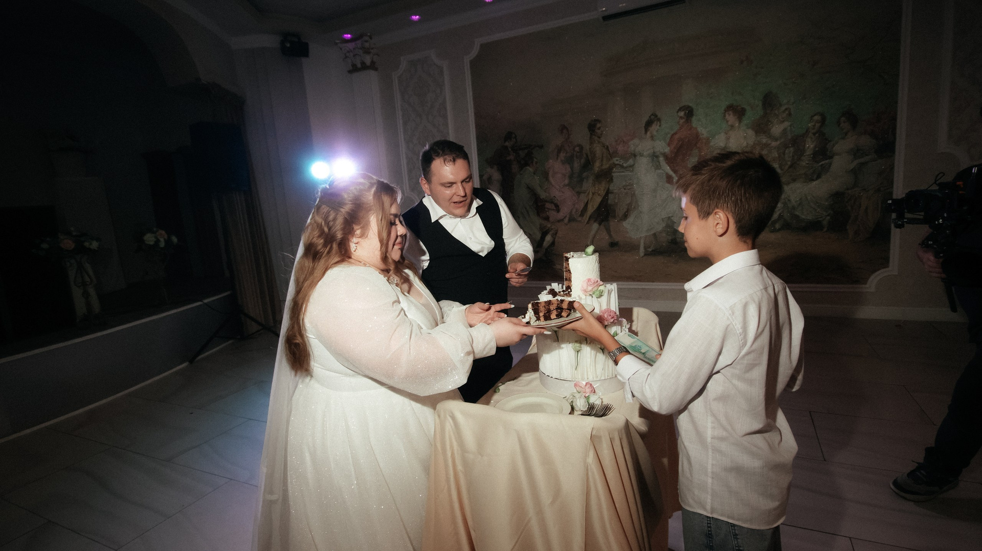 Перед камерой сначала было некомфортно, особенно в ЗАГСе — я плакала почти без остановки. Но потом камера стала как будто незаметной: будто она есть — и будто её нет. После ЗАГСа на прогулке уже было легко, а на банкете я вообще перестала обращать внимание и чувствовала себя свободно.